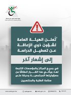 The Public Authority for Disability Affairs announces the suspension of classes until further notice at vocational...